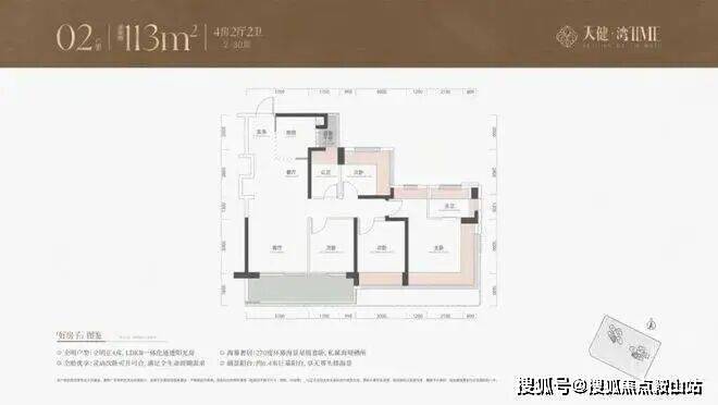 113平4房主力户型,大部分房源的采光和景观视野较好。