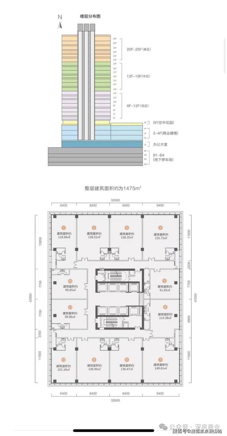 ————————————出租面积:92-1477㎡(可自由组合)整层面积:1477㎡出租均价:130元/㎡起含税交付标准:公区精装,办公区毛坯标准层高:3.7米,25楼4.5米管 理 费 :12元/㎡,空调自装停 车 费 :800元/月,单日封顶60元交付时间:随时B栋总建面:3.7万㎡,写字楼2.9万㎡建筑总高约98米,地面25层地址:罗湖区梨园路与梅园路交汇处地铁:7/9号线红岭北站G出口