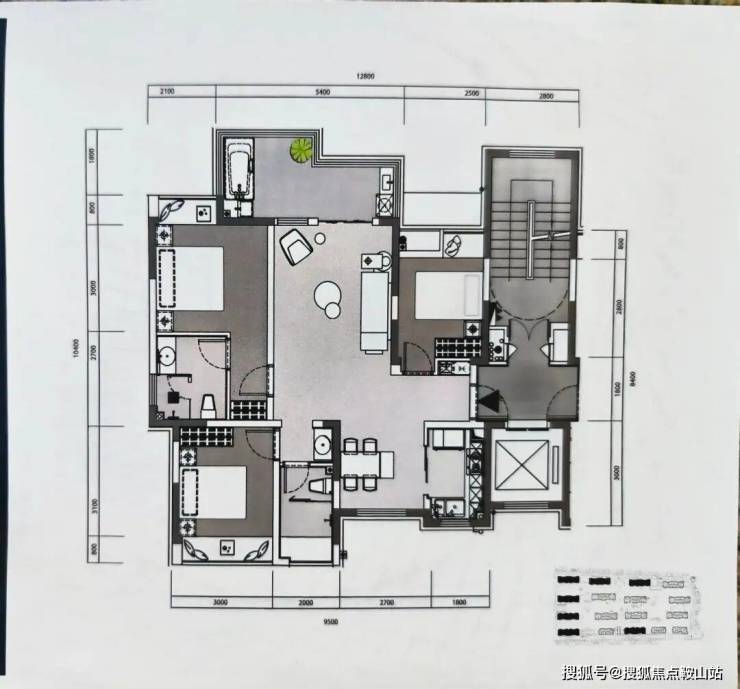 A 户型:建面约 140㎡ 三房两厅两卫