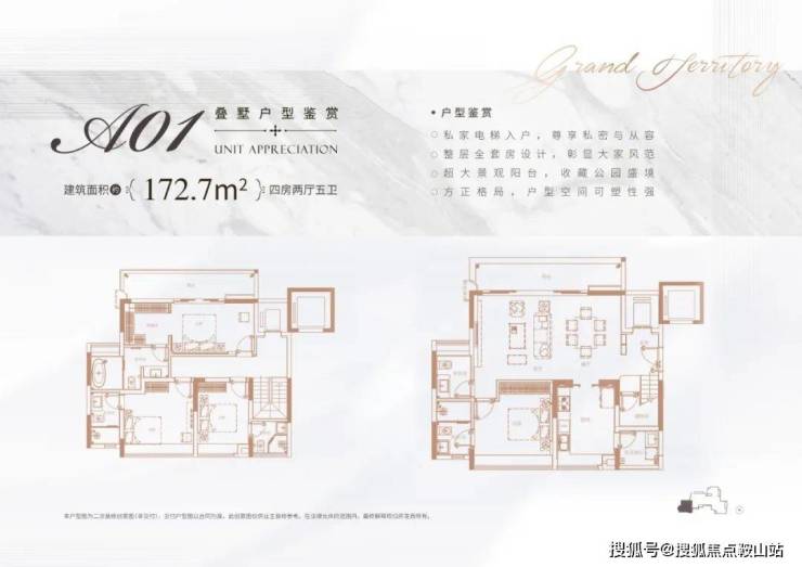 设计亮点:私家电梯入户、全屋套房布局、6米宽景观阳台,实现“有天有地有花园”的居住体验。