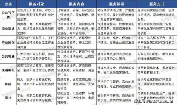 物业企业在梳理服务内容时,应追求条理化、精细化和差异化,需充分考虑不同业态基于服务对象、服务内容、服务标准、服务方式等方面的显著差异,做到广泛性和特殊性的统一。特别是在非住宅业态领域,物业服务的内容和标准区别较大,企业应根据实际情况,详细梳理各业态的服务内容,挖掘各细分领域里的标杆项目案例。