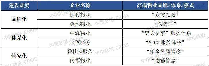 表:部分企业在高端物业领域的建设情况资料来源:中指研究院物业研究:https://www.cih-index.com/