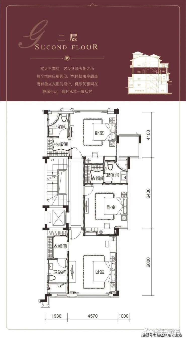 •二楼:家庭休息区,设有三套间、长辈房和儿童房,每个房间带卫生间、衣帽间,空间功能分区合理,互不干扰;