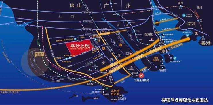 项目以南经珠海大道与港珠澳大桥西沿线相连,可快速通达港澳。项目周边西部沿海高速、高栏港高速等与黄茅海大桥对接,可通达珠三角各地,与广东省其他城市形成1小时经济圈。