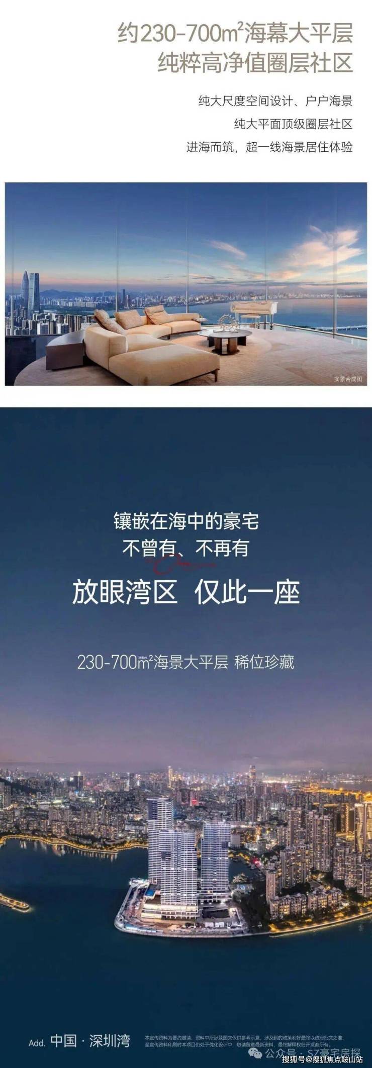 深圳湾500㎡的三面看海公寓大平层,单价突破30万/㎡,总价逾1.5亿。
