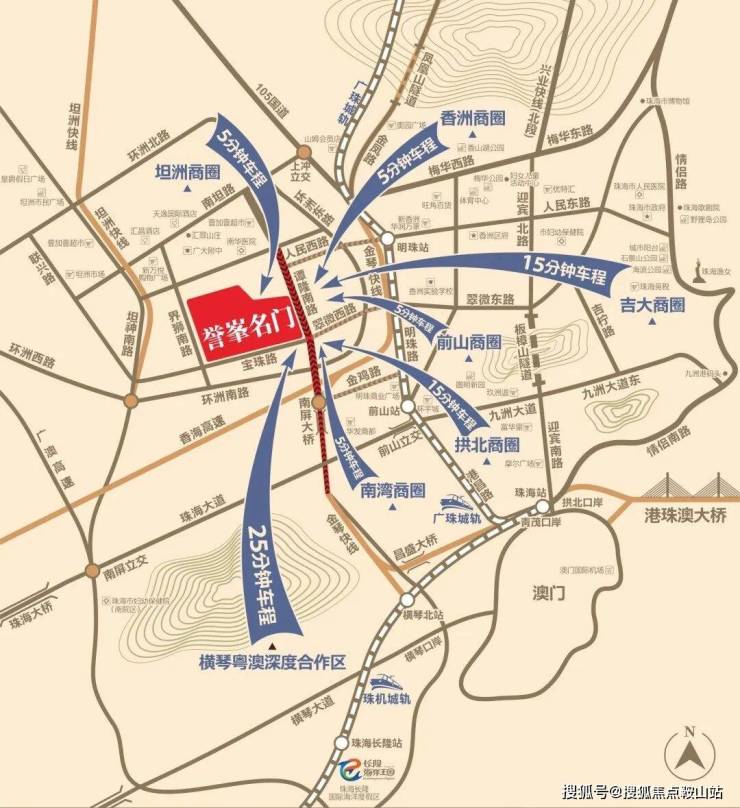 誉峯名门,雄踞珠坦城央交汇处,坐拥香洲生活圈,随着枢纽工程造贝立交的不断推进,未来将连通金琴快线、港珠澳大桥、深中通道,纵横湾区各大城市,香海路将成为珠海主城连通西部中心城区的交通大动脉,誉峯格局,遇鉴未来。
