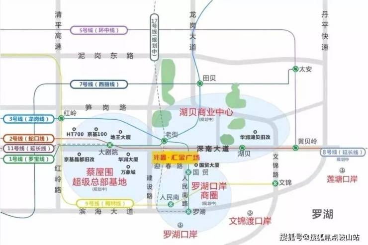 轨道密集:未来项目周边九条地铁线全覆盖,速效贯通深港都会圈(地铁线已有:1.2.3.5.7.9号线,规划中:8.11.17号线)