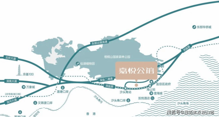 1 站达罗湖,9 站抵福田 CBD;深盐路作为封面标杆,直连深南大道、滨河大道,约30 分钟贯通福田、南山;沿海高速、坪盐通道等快速路网织就无界出行网。项目更有沙头角、莲塘双口岸加持 —— 步行约 10 分钟通关香港,未来无界双城生活。