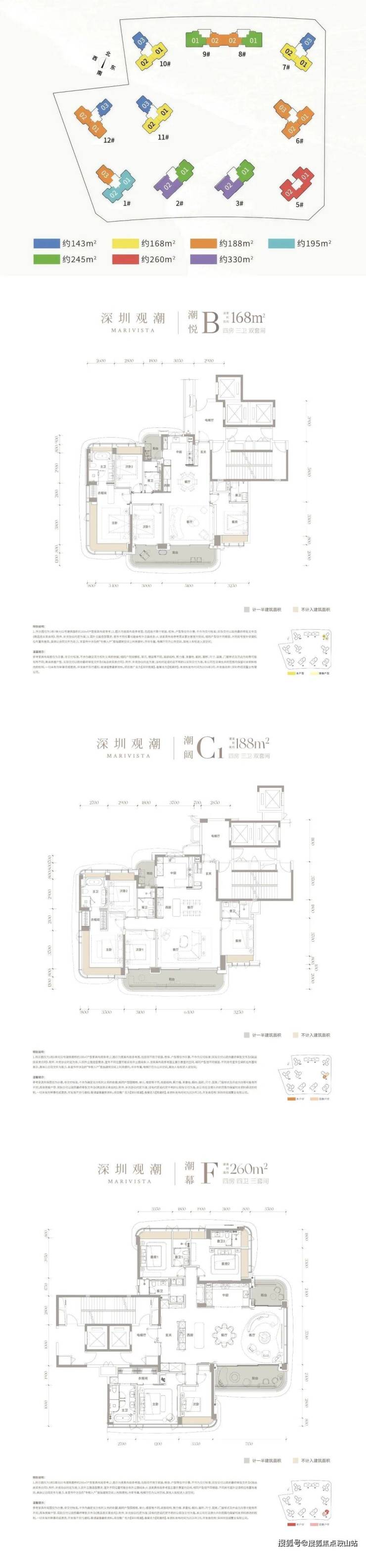 产品与配套拉满,主力户型140-332㎡纯大平层,全南向布局,实用率接近100%,专梯入户搭配270°环幕海景视野;自带1.83万㎡华润运营商业,1公里内覆盖壹方城、欢乐港湾等顶奢商圈,邻市级文化地标,景观与生活质感兼具。