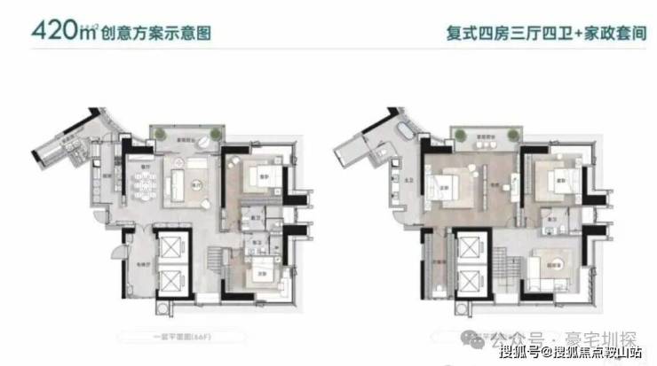 ▫️约280㎡|4+1房4卫双梯入户,横厅连接阳台,主次卧双套房,西南向高层可看深圳湾