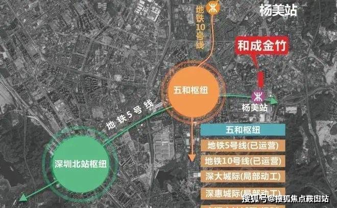 2站即达五和枢纽,全市唯一集3条城际铁路(广深、深惠、深大)和2条城市轨道(5号线、10号线)为一体的综合枢纽