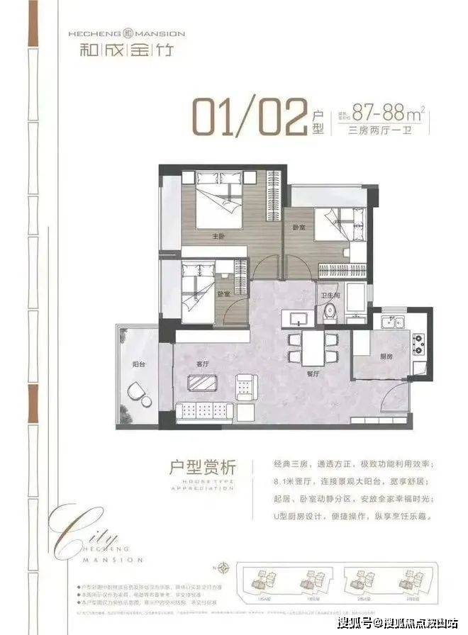 约88-99㎡精制3房,考究空间布局,户户方正实用;入户、起居、厨房、卫浴、收纳等五大精装系统,优选国内外知名品牌,大手笔配置,为城市精英营造极具品质感的美好生活方式