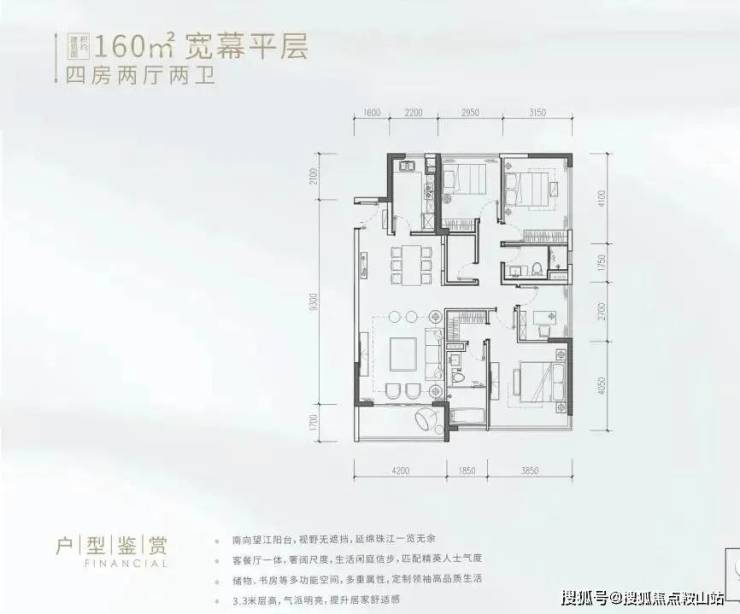 因为是旧改项目,这是金融城唯一一个可以建300平以下小户型的商业项目,所以也会看到项目百平以下的公寓和135~160㎡的商业平层。