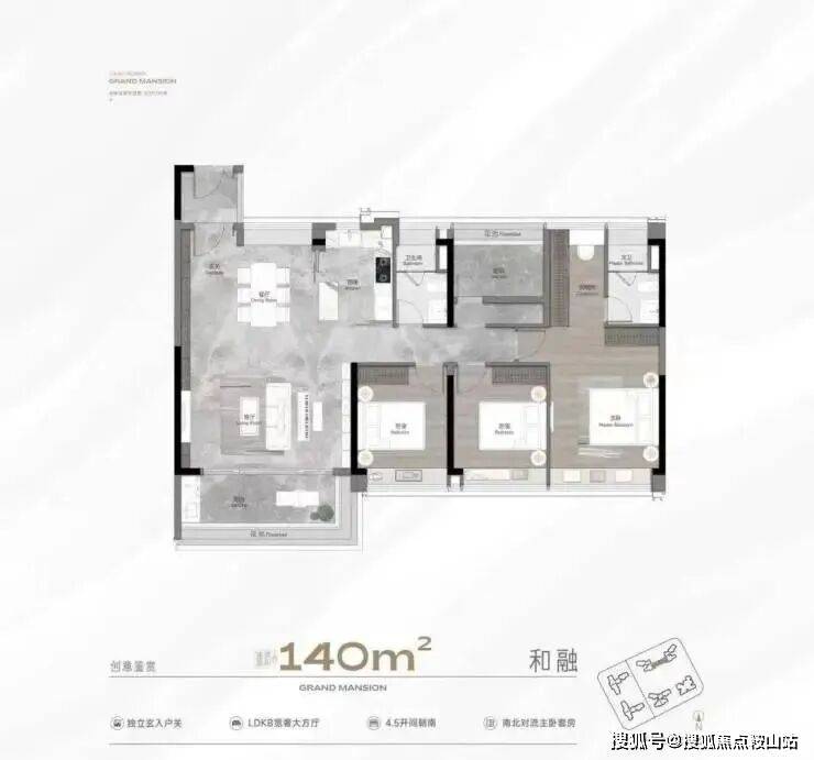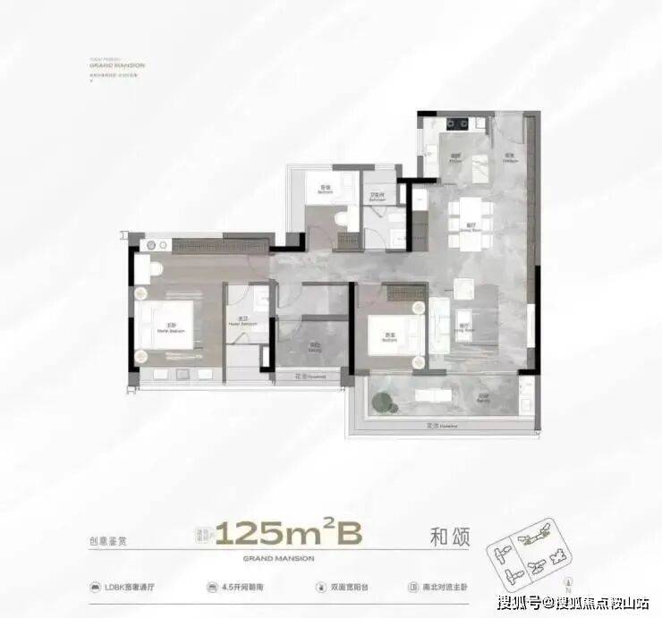 滨江四房发售户型:建面约105-188㎡滨江四房