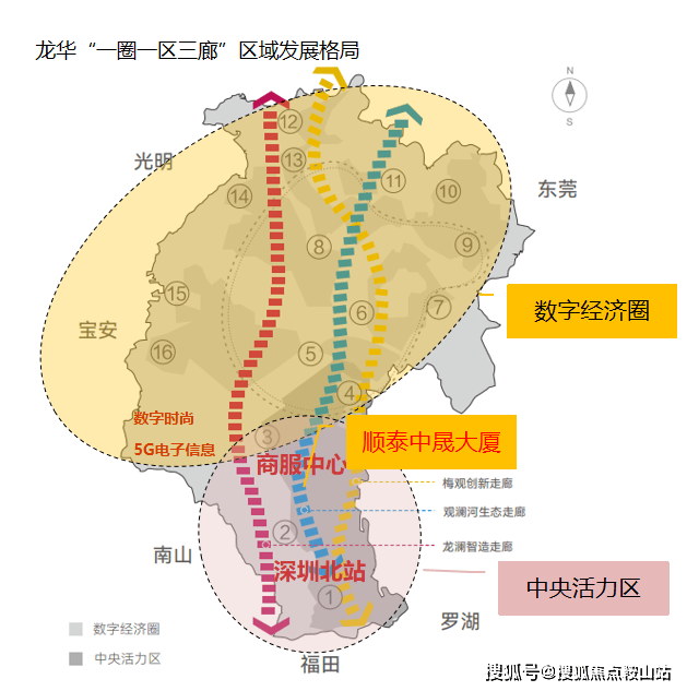 •距离深圳北站交通枢纽仅3 站,三大高铁形成半小时湾区经济圈,4小时武汉、厦门经济圈,8小时京津沪经济圈;