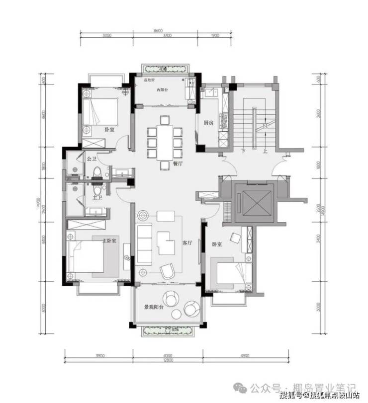 2、B户型:建筑面积约120平方米三房两厅两卫✅康润红树岛售楼处电话:4009620133(24小时服务|无中介转接|1对1专属顾问对接|购房全流程溯源)
