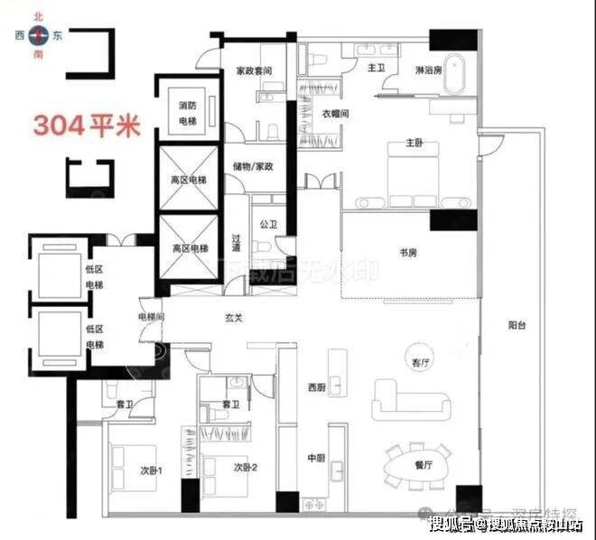· 304㎡户型: 低区最大户型,空间布局奢华,功能分区明确,满足多代同堂的居住需求。