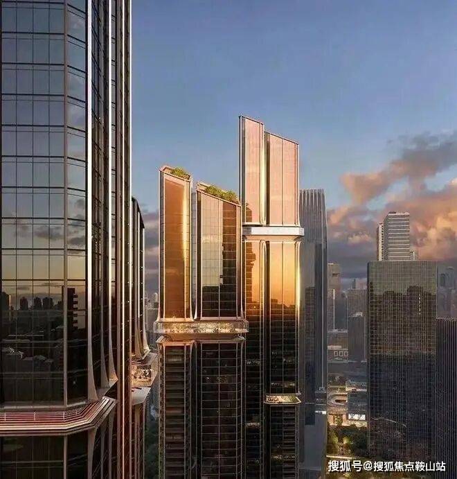项目规划5栋超高层住宅,采用全玻璃幕墙设计,实用率超95%,主力户型为209㎡以上大平层。项目以“第四代住宅”标准打造,配备空中连廊、星空会所、架空泳池等共享空间,并融入垂直绿化体系