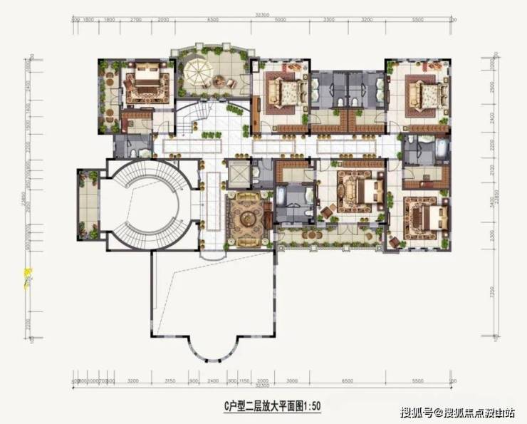 别墅二层可以设置5房4卫和超大活动室,客房还配有景观阳台;主人房套房内衣帽间、卫生间等功能面面俱到;配设开间约6.5米的空中露台,挥洒时光,静享人生。