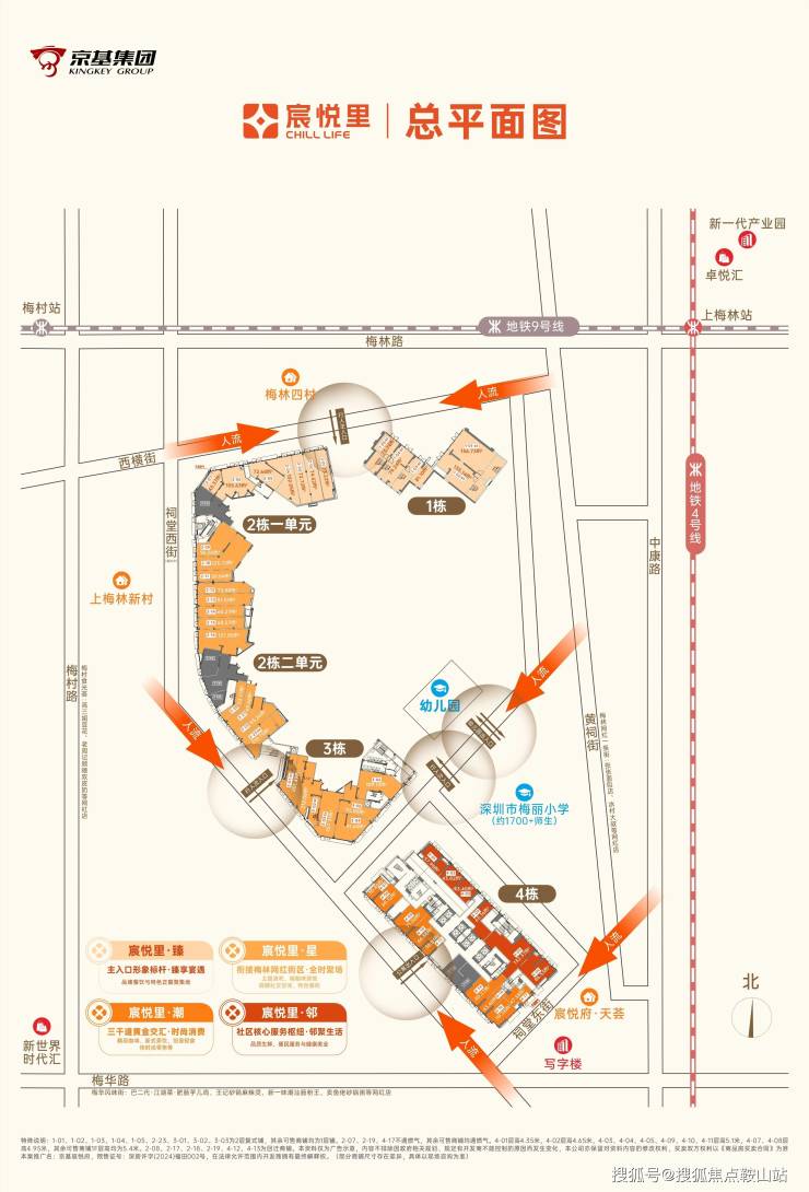项目为双地铁口物业(4/9号线【上梅林站】与【梅村站】环绕),3站市民中心、4站福田高铁、6站抵达福田、皇岗双口岸,高效接驳深港客流。地铁带来源源不断的消费人潮,为商铺注入持久活力。