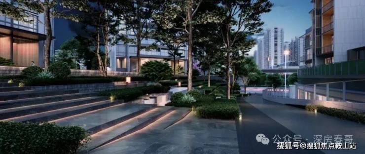 项目匠造约2.5万㎡中心花园,阶梯式双层园景,下层与商业相连活力满分,上层静谧私享,现代简约审美,以园林谧境回应新贵都心绿洲向往。