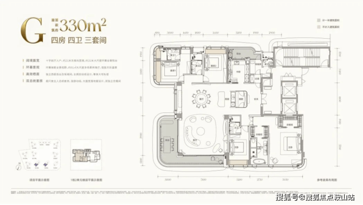 330㎡4+1房5卫+家政套间,2梯2户,总价约5000万(单价约15.2万㎡)首推产品:
