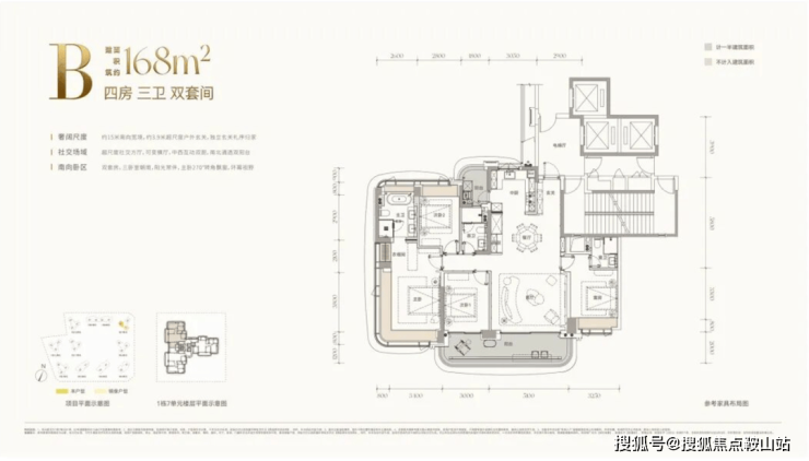 168㎡4房2卫,3梯3户,总价约2200万(单价约13万/㎡)