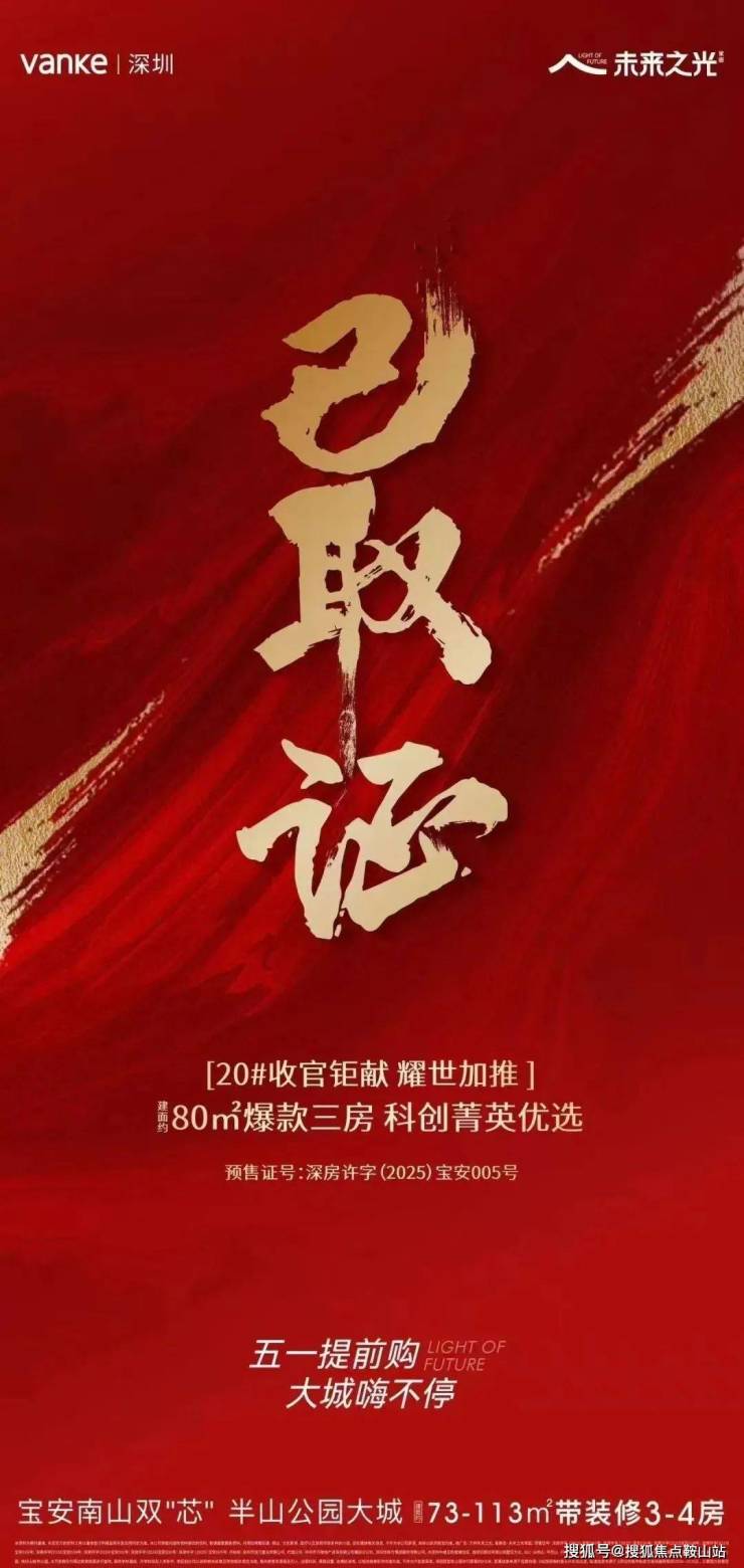 万科未来之光,最后一栋20栋一单元、二单元,本周五取证!80平3房2卫,510万起!少量楼,特惠工抵房,498万起,买80平3房2卫!85折+大额返现+软装大礼包!