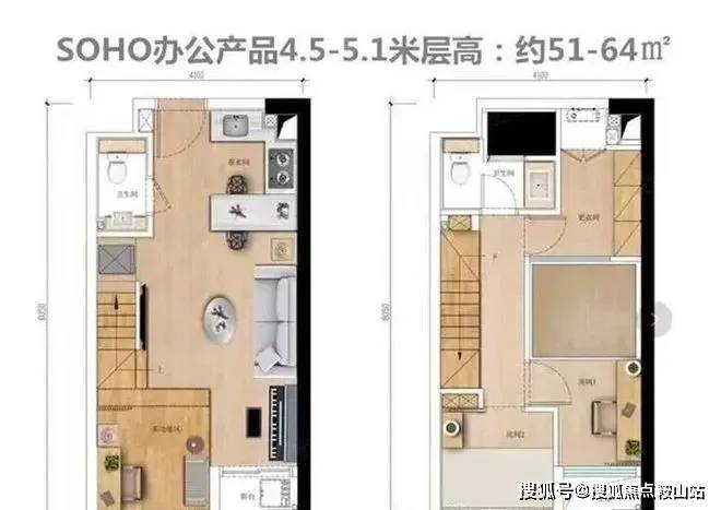 【层高】:Loft4.5—5.1m;使用率:Loft120%