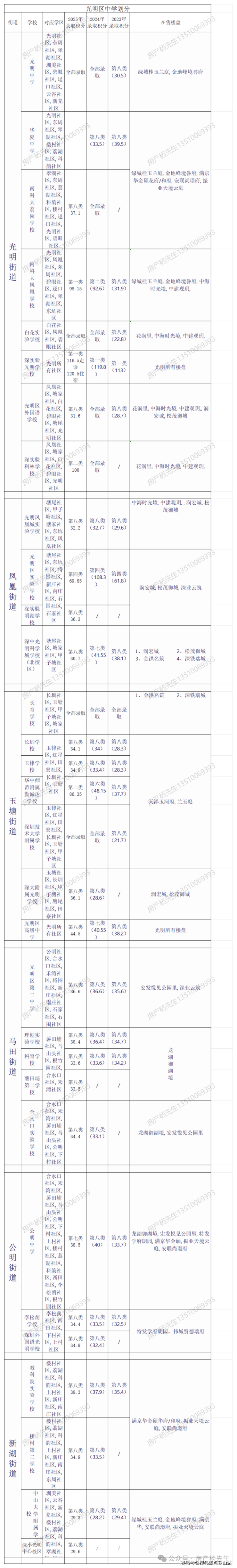 光明区初中划分及积分