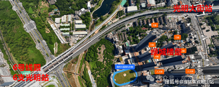 其次地铁通勤也比较方便,楼盘是位于6号线光明大街跟光明站的中间位置,大概在67百米这样,都是在步行10分钟内,6号线是经龙华红山北站,直达福田科学馆的,并且这个光明站目前还开通了6号线支线的南延线,在光明站上车3站还可到高铁站换乘13号线!