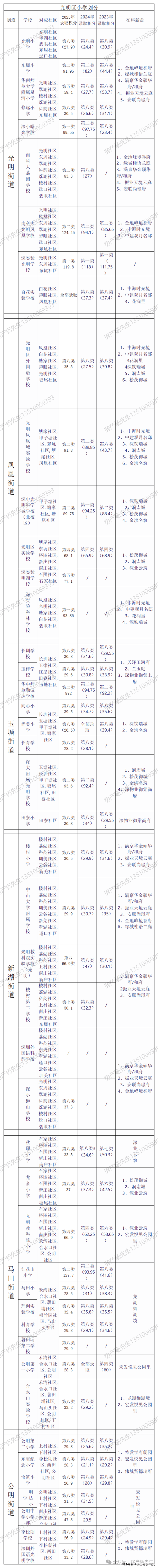 光明区小学划分及积分