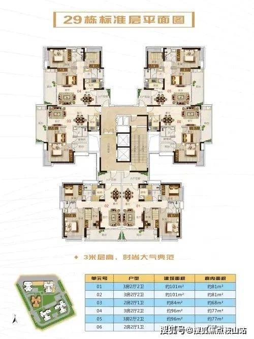 总共打造5栋楼宇,坐北朝南,现开售29、30栋,一楼设有独立的活动花园,地下停车场自带超700个停车位。
