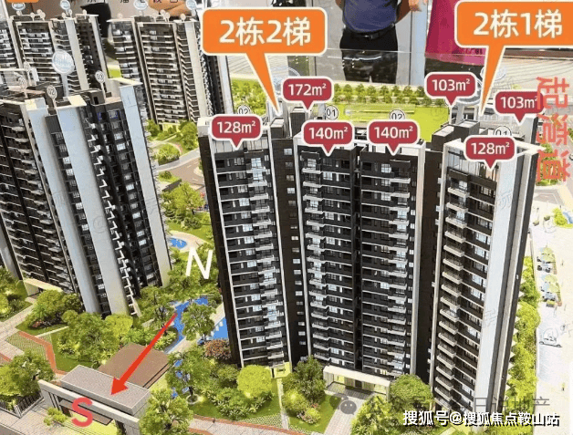 2栋1梯:103/128/140m户型;2栋2梯为两梯三户设计,有约140/172m户型,共计127套房源。(精装)