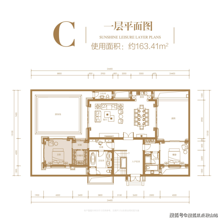 一层:使用面积约 163.41㎡,