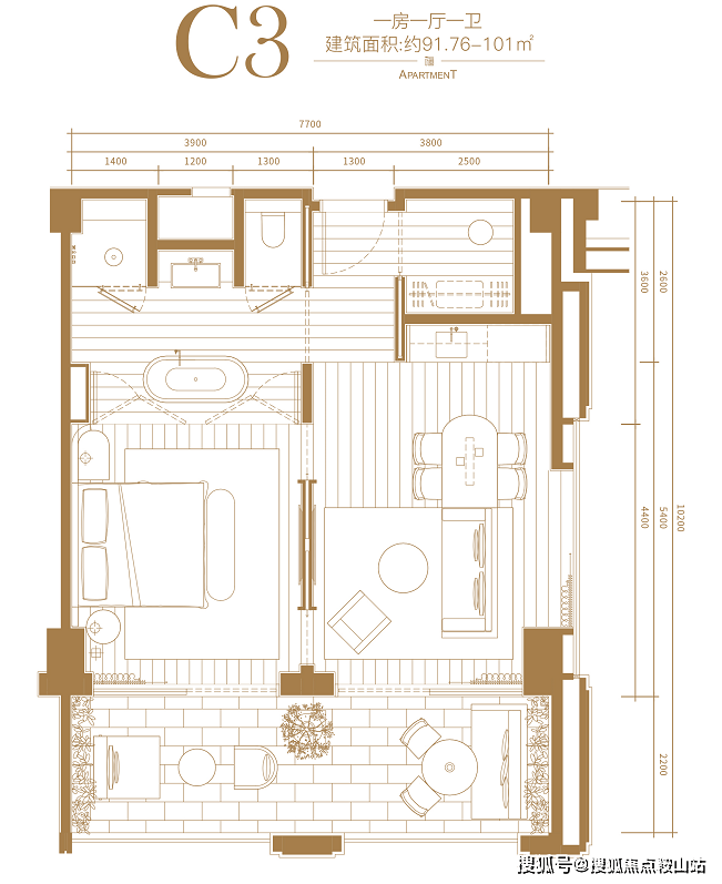 C3户型:一房一厅一卫