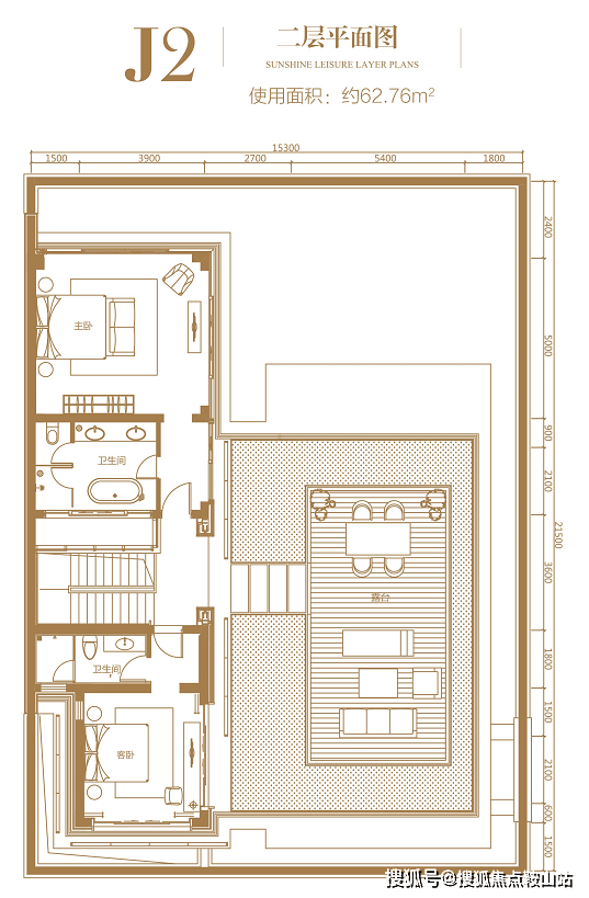 二层:使用面积约 62.76㎡,