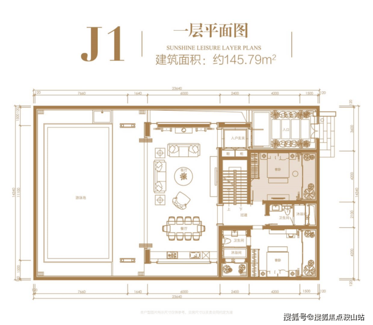 一层:使用面积约 145.79㎡,