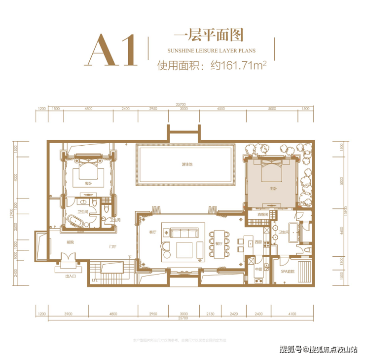 一层:使用面积约 161.71㎡,