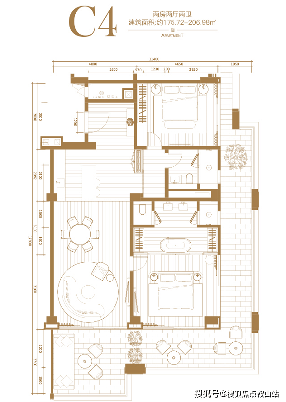 建筑面积约:175.72-206.98㎡