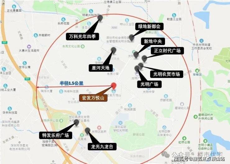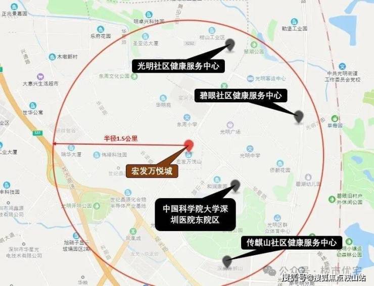 教育:项目半径1.5公里范围内分布有多所公里学校,如:东周小学、光明中学、光明小学、深圳实验学校光明部、深圳实验光明学校、凤凰学校等。另外范围内的万科光年四季小区正在建设一所小学。