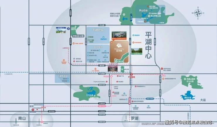 平湖,深圳几何地理中心,拥“1枢纽+2城际+3地铁+4快速路”的立体枢纽级交通。