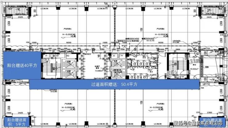 偏核心筒设计:户型方正,采光最大化,整层使用率可达约83%