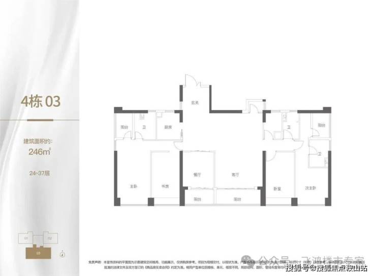229平方米的四房则拥有3.3米层高,6.7米客厅开间,舒适度高。配置较多落地窗,视野通透,空间敞亮感十足,可享受山景、海景、城市景观三重景观。