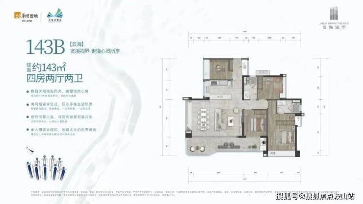 项目建面约24万㎡,规划了建面约10万㎡万象系商业,推出建面约125-143㎡润系3.0迭新之作,堪称滨海湾新区的海居封面范本。