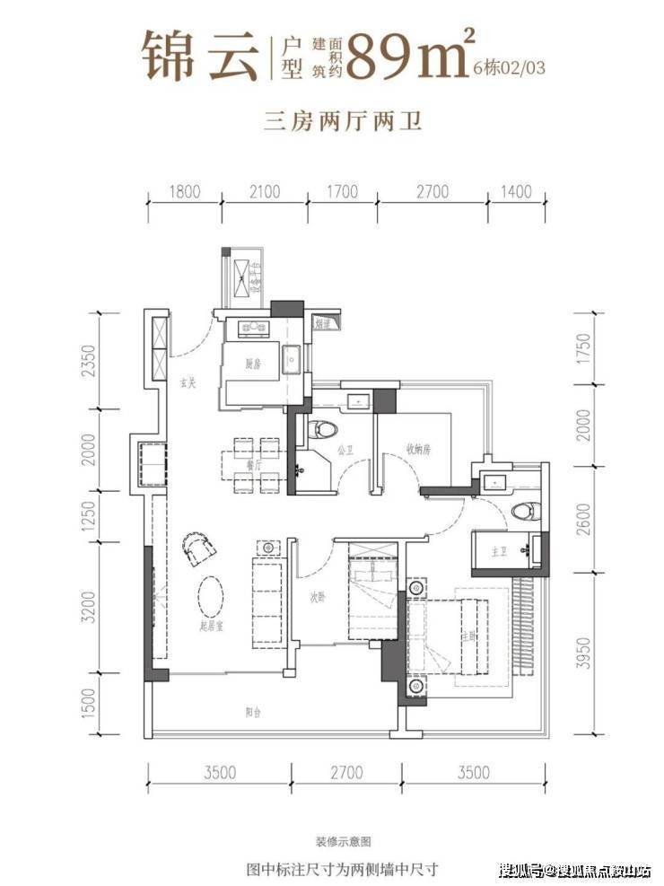 【建筑面积89㎡3房2卫】