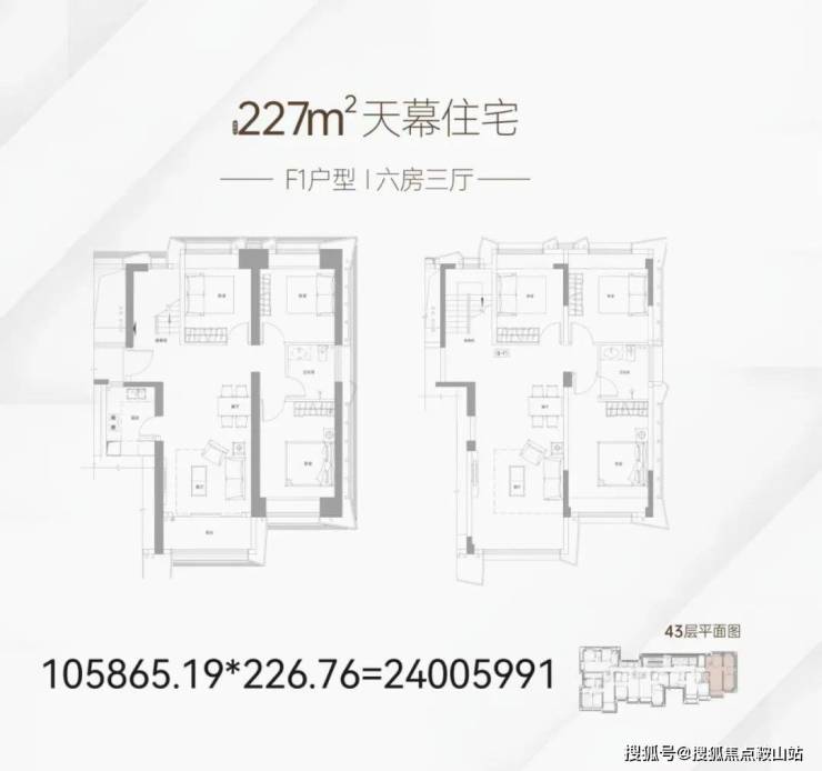A户型226.76平米,备案单价:105865.19元/平米,总价24005991元(六房可改8房,加建费另算)