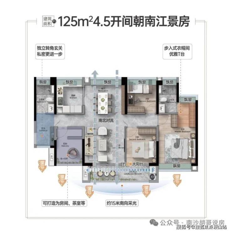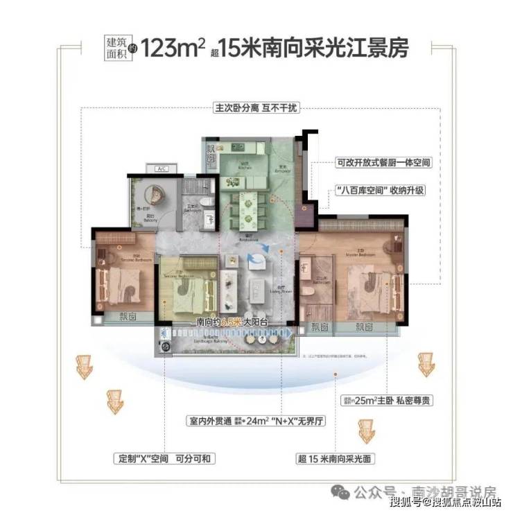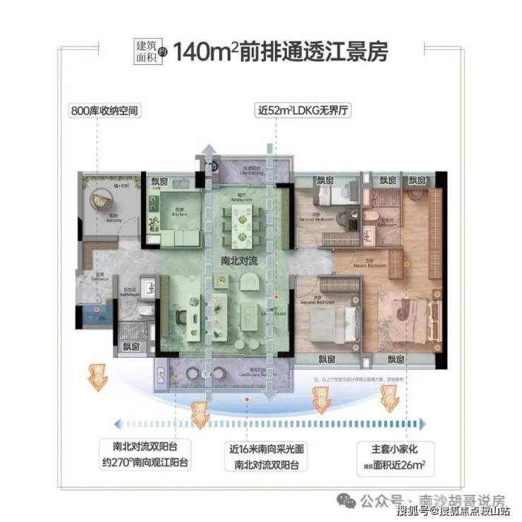真江景当南向:地处明珠湾出海口,户户朝南望江;