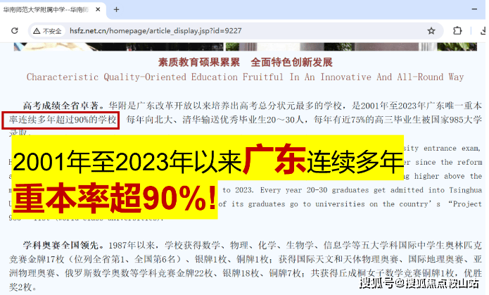🔼华南师范大学附属中学:广州名校之一,高考连续多年重本率达90%(来源于官网:http://www.hsfz.net.cn/homepage/article_display.jsp?id=9227);
