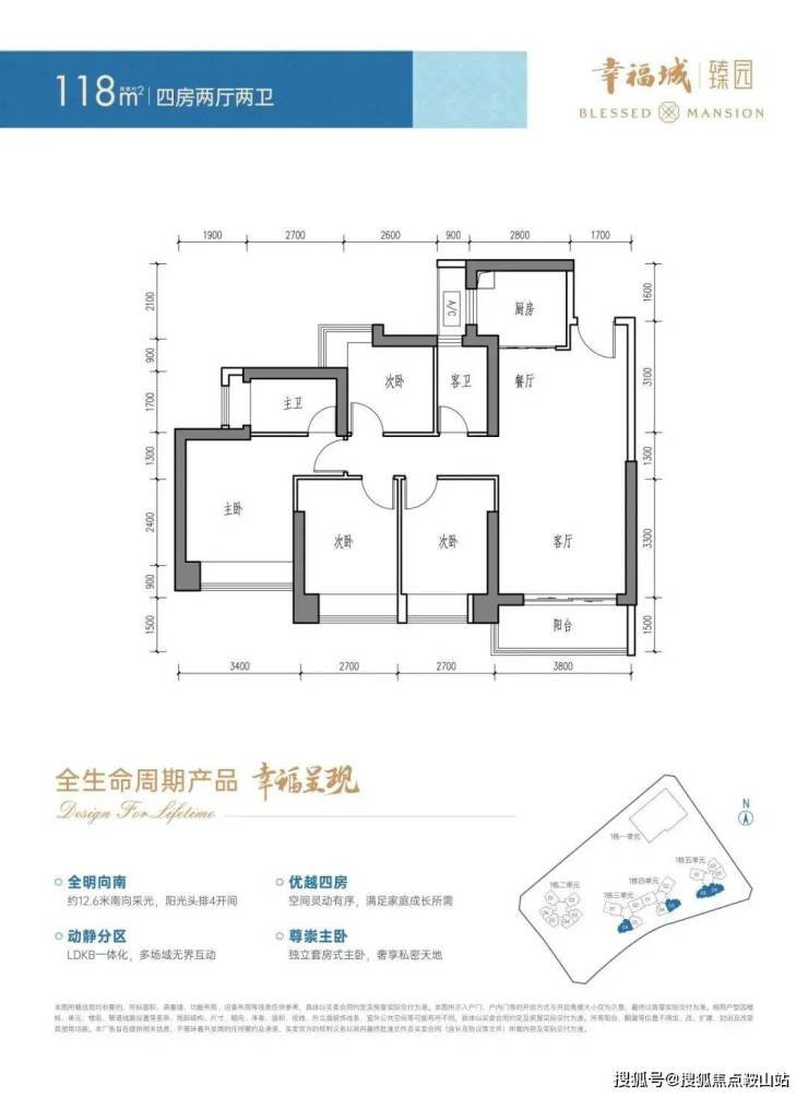 建面约118㎡ 4房2厅2卫(竖厅)4开间朝南布局,无论是二胎时代还是三代同堂,都能尽享阳光清风。